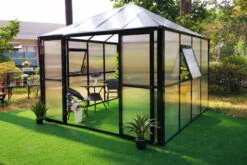 OUTFLEXX Gewächshaus, Anthrazit, Alu/Polycarbonat, 271x271x241/180cm, 4 Fenster, 10 Mm Wandstärke