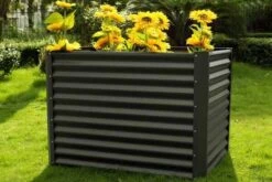 Ploß Rabida Pflanzgefäß, Champagner-meliert, Polyrattan, 113x40x70 Cm, Mit 3 Kunststoffeinsätzen
