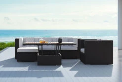 OUTFLEXX Loungemöbel-Set, Schwarz, Polyrattan, 5 Personen, Wasserfeste Kissenbox, Inkl. Kaffeetisch