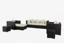 OUTFLEXX Loungemöbel-Set, Braun, Polyrattan, 6 Personen, Wasserfeste Kissenbox, Inkl. Kaffeetisch