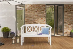 VILLANA Gartenbank, Weiß, Akazienholz, 128 X 54 X 81 Cm, 2 Personen