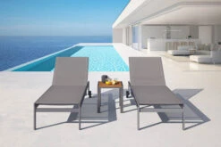 OUTFLEXX 2er-Set Sonnenliegen, Silber, Edelstahl/Teak, 195,5x74x35cm, Mit Beistelltisch 45x45cm