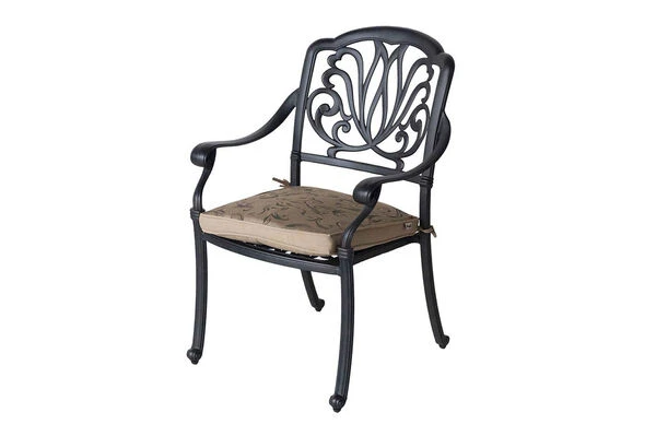 Dia passenden „Amalfi“ Diningsessel mit den MaĂźen von ca. 64 x 65 x 93 cm (L/B/H) bietet Sitzkomfort und besonderes Design in Einem. Kombiniert wird das romantisch koloniale Design mit dem im Lieferumfang enthaltenen Sitzkissen mit Wendekissenbezug. Hier können Sie selber entscheiden, ob Sie lieber das geblĂĽmte Muster mögen oder die unifarbene Seite vorziehen. Durch den ReiĂźverschluss ist das Kissen zudem waschbar und kann durch die Bindekordeln seitlich der Sitzfläche, am Sessel festgemacht werden. Die Sessel sind ebenfalls aus hochwertigem Aluminium-Guss gefertigt. Dadurch ersparen Sie sich auch hier, das verstauen und transportieren zur kalten Jahreszeit. Die Sessel sind in einem schönen Bronzeton gehalten und bieten Ihnen höchsten Sitzkomfort in einem absoluten Sitz-Highlight. AuĂźerdem bieten diese mit einer Sitzfläche von ca. 43 x 45 cm, einer Sitzhöhe von ca. 48 cm und einer Armlehnenhöhe von ca. 63 cm rundum perfekten Sitzkomfort. Mit einem Gewicht von nur ca. 8 kg können Sie die Sessel problemlos hin und her bewegen, nicht zuletzt dank des stabilen Aluminiumgestells sind diese dabei zudem ĂĽberaus standfest und stabil.