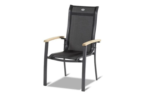 - Stapelbarer Sessel mit xerix-farbenem Aluminium und FSCÂź-Teakholz Armlehnen