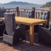 Elegant und zugleich robust präsentiert sich diese extravagante Esstischgruppe von Hartman für 8 Personen. Das Set besteht aus einem rechteckigen Esstisch mit den Maßen von ca. 220 x 90 cm und 8 Multipositionssessel aus der „Aruba“-Serie.