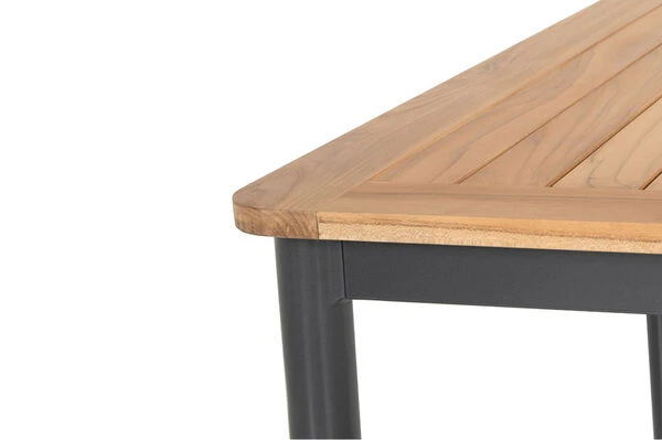 Die Tischleisten aus FSC-zertifiziertem Teakholz verleihen diesem Tisch einen ganz besonderen Charme. Darüber hinaus ist Teakholz besonders witterungsbeständig und hält sowohl Hitze und Frost, als auch Regen und Feuchtigkeit aus. Es hat außerdem aufgrund des hohen Anteils an holzeigenen Ölen einen natürlichen Schutz gegen Pilze und andere Schädlinge.