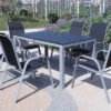 HARTMAN Sondermodell Yasmani / Primo Sitzgruppe, Xerix/natur, Alu/Teak/Glaskeramik, 6 Multipo, 240x100cm, FSC-Teak Armlehnen