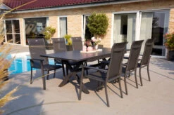 Das gekreuzte Gestell ist gefertigt aus pulverbeschichtetem Aluminium in der Farbe Xerix (Anthrazit) und wird optisch perfekt durch die Glaskeramik-Tischplatte, ebenfalls in der Farbe Xerix ergänzt. Die Maße von ca. 160 x 100 x 75 cm sorgen dafür, dass stets ausreichend Ablagefläche zur Verfügung steht. Bei Bedarf kann der Tisch auf eine Länge von ca. 220 cm ausgezogen werden, so finden bequem auch große Runden genügend Platz in Ihrem Garten. Dank der Ausziehfunktion hebt sich dieses Modell von den üblichen Tischen der Xanadu Serie ab – den Ausziehtisch erhalten Sie exklusiv bei uns.