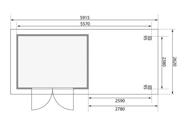 - Artikelbezeichnung: Askola 5 im Set mit Anbaudach 2,80 m Breite und 19 mm Seiten- Rückwand