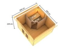 Das Saunahaus Mainburg 1 SET A aus nordischer Fichte von KARIBU wird aus 38 mm Wandbrettern im Steck-/Schraubsystem gefertigt und kann somit rasch und einfach aufgebaut werden. Das praktische Pultdach aus Massivholz sorgt dafür, dass das Saunahaus schnell und wirkungsvoll gegen Witterungseinflüsse geschützt ist. Mit ihren Außenmaßen von ca. 309 x 309 x 229 cm und den Innenmaßen von ca. 297 x 297 x 195 cm, einer Grundfläche von 9,3 m² und einem umbauten Raum von 19,2 m³ bietet diese Sauna für alle Anforderungen ausreichend Platz.