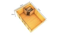 Das Saunahaus Mainburg 4 SET A aus nordischer Fichte von KARIBU wird aus 38 mm Wandbrettern im Steck-/Schraubsystem gefertigt und kann somit rasch und einfach aufgebaut werden. Das praktische Pultdach aus Massivholz sorgt dafür, dass das Saunahaus schnell und wirkungsvoll gegen Witterungseinflüsse geschützt ist. Mit ihren Außenmaßen von ca. 490 x 368 x 229 cm und den Innenmaßen von ca. 479 x 357 x 189 cm, einer Grundfläche von 18 m² und einem umbauten Raum von 37 m³ bietet diese Sauna für alle Anforderungen ausreichend Platz. Auch der geräumige Vorraum lädt zum geschützten Verweilen und Entspannen zwischen den Saunagängen ein.