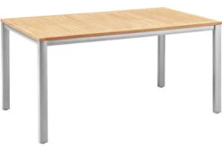 Der rechteckige Tisch für 4-6 Personen bietet Platz für die ganze Familie. Die Tischplatte mit den Maßen von ca. 160 x 95 x 74 cm, besteht aus hochwertig verarbeiteten und FSC-zertifizierten Teakholz und wird von einem soliden Gestell aus silberfarbenem Aluminium getragen. Die positiven Eigenschaften von Aluminium sind zahlreich: Es ist leicht, wetterfest, stabil und elegant. In Kombination mit der Stabilität und der natürlichen Patina von Teakholz wird aus diesem Möbelstück das Highlight für Ihren Garten.