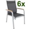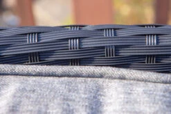 Das Untergestell des Möbelstücks besteht aus Aluminium, dies macht es nicht nur stabil, sondern sorgt auch dafür, dass es sich aufgrund des relativ geringen Gewichts ganz leicht hin und her stellen lässt. Dazu sorgt die Pulverbeschichtung auf dem Aluminium für eine verbesserte Korrosionsbeständigkeit. Das Aluminiumgestell wird mit Polyrattangeflecht bespannt. Aufgrund der enormen Wetterbeständigkeit von Polyrattan können Sie diese Diningsessel ohne Bedenken nach Abnahme der Polster das ganze Jahr über im Freien stehen lassen. Das flache Geflecht ist in der Farbe schwarz (Faser w1) gehalten und bietet so ein optisches Highlight in allen Terrasseneinrichtungen! Gemütliche Sitz- und Rückenpolster (100 % Olefin (200 g/m³)) mit einer Stärke von ca. 5 cm sorgen für höchsten Sitzkomfort. Farblich sind die grau melierten Polster perfekt auf das Geflecht abgestimmt. Die synthetische Faser Olefin wird für ihre Hitzebeständigkeit und optimalen Trage- und Pflegeeigenschaften geschätzt. Sollten Sie einmal Falten in Ihren Polstern haben, werden diese bei Wärme von alleine verschwinden, sodass die Bezüge komplett bügelfrei sind. Textilien aus Olefin sind bequem, hautkühlend, waschbar und bügelfrei. Sie eignen sich perfekt für den Einsatz im Freien, was nicht zuletzt an ihrer wasserabweisenden und atmungsaktiven Materialzusammensetzung liegt.
