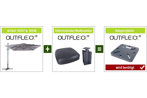Wichtige Information: Dieser Schirm kann ohne Adapterplatte mit unseren OUTFLEXXŸ SchirmstÀndern oder dem OUTFLEXXŸ Bodenanker kombiniert werden.