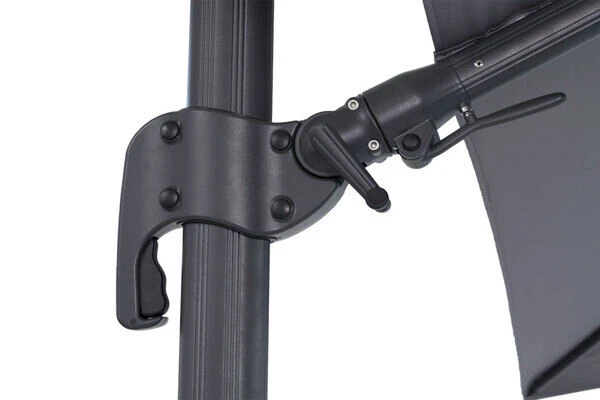- Kurbel lÀsst sich in den Schirmstock umstecken, dann kann der Schirm um 360° gedreht werden.