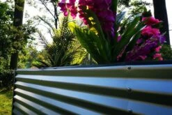 Das silberfarbene Hochbeet aus dem Material Zincalume hat die MaĂźe von ca. 270 x 270 x 90 x 84 cm und ist dank seiner besonderen Eck-Form auch zum optischen Eingrenzen, beispielsweise von der Terrasse, bestens geeignet. Die Gummi-Ummantelung am oberen Rand des Hochbeets sorgt fĂĽr ein sicheres Arbeiten am Hochbeet und die 6 nicht sichtbaren Querstreben im Hochbeet sorgen fĂĽr zusätzliche Stabilität. Beim Werkstoff „Zincalume“ handelt es sich um ein mit Zink und Aluminium beschichtetes Stahlblech, das durch die Beschichtung jahrelang resistent gegen Umwelt- und WitterungseinflĂĽsse ist. Seine Lebensdauer ist vier mal länger als bei galvanisiertem Stahl.