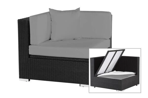 OUTFLEXX® ModulelementeLine: Polyrattan Eckelement mit Kissenboxfunktion in schwarz