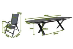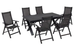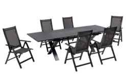 7-teilige Esstischgarnitur von OUTFLEXX® aus Aluminium/Textilene in anthrazit, Ausziehtisch 180/280x100x78cm und 6 Multipositionssessel