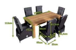 OUTFLEXX® Esstischgarnitur, Polyrattan/recyceltes Teakholz, Tisch ca. 200 x 100 x 77 cm, 6 Hochlehner-Diningsessel