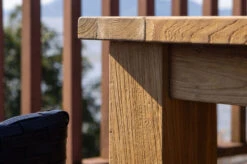 Die verwendeten Materialien und deren hochwertige Verarbeitung machen den Tisch besonders strapazierfähig, robust und zusätzlich sehr stabil. Das Teakholz ist besonders witterungsbeständig und hält sowohl Hitze und Frost, als auch Regen und Feuchtigkeit aus. Es hat außerdem aufgrund des hohen Anteils an holzeigenen Ölen einen natürlichen Schutz gegen Pilze und andere Schädlinge, sodass sich die Pflege dieses Gartentisches auf ein Minimum beschränkt und Sie Ihre Zeit im Garten mit angenehmen Tätigkeiten verbringen können. Das Teakholz ist ein Naturprodukt und lässt so jeden Tisch zu einem Einzelstück werden. Diese Natürlichkeit wird mit der allmählichen Patinabildung in einem schönen Silbergrau unterstrichen. Wenn Sie dieser entgegen wirken möchten, empfehlen wir Ihnen eines unserer Pflegeöle, welches Sie im Zubehör finden. Zum Schutz Ihrer Terrasse ist der Tisch zusätzlich mit Fußkappen ausgestattet, welche unschöne Kratzer vermeiden.
