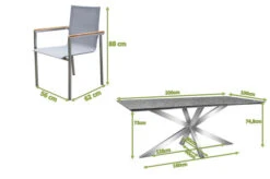 1x OUTFLEXX Esstischgarnitur, silber/anthrazit, Edelstahl/Granit/Textilene, 200×100 cm, 6 Gartensessel, Armlehnen aus FSC-Teak