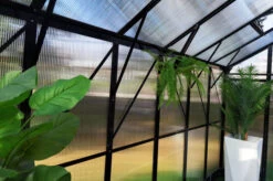 Der pulverbeschichtete Aluminiumrahmen und die ca. 8 mm dicken Hohlkammerplatten aus Polycarbonat sind extrem witterungsbeständig, stabil und robust. Für zusätzliche Stabilität und sicheren Halt sorgen die starken Kantenprofile. Die Polycarbonat-Platten bieten eine hohe Wärmedämmung, eine gute Lichtdurchlässigkeit und gleichzeitig einen ausreichenden UV-Schutz für Ihre Pflanzen, sodass kein zusätzliches Abschattieren mehr nötig ist. Passendes Montagematerial und eine anschauliche Montageanleitung sorgen für einen schnellen und einfachen Aufbau.