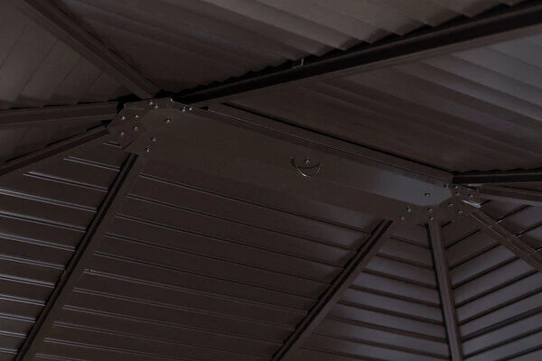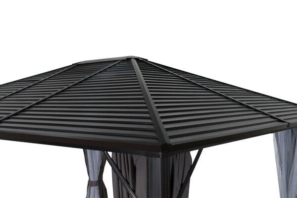 | Innovatives Stahlblech Anders als gelĂ€ufige Modelle besitzt dieser Hardtop Pavillon von OUTFLEXXÂź ein Dach aus ca. 0,4 mm dicken Stahlblechen. So brauchen Sie sich bei Wind und Wetter keine Sorgen um Ihre GartenĂŒberdachung zu machen.  | |