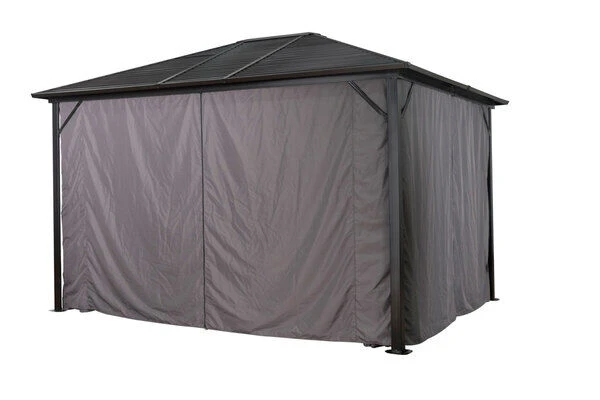 1x OUTFLEXXÂź Hardtop Pavillon aus Aluminium in Braun, ca. 300 x 365 x 260 cm, inkl. Seitenteile und Insektenschutz