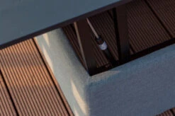 Für den nötigen Schutz sorgt die Wetterbeständigkeit und Pflegeleichtigkeit des verwendeten Materials. Das Untergestell und die Tischplatte des Tisches bestehen aus pulverbeschichtetem Aluminium, es macht ihn stabil (Gewicht ca. 29,8 kg), belastbar (bis zu ca. 120 kg) und widerstandsfähig gegen jegliche Umwelteinflüsse. Das verwendete Sunbrella Textilen (260g/m²) besteht aus 100 % Acryl, ist atmungsaktiv, schmutzabweisend und schimmelbeständig. Bei der Herstellung des Materials werden die Farbpigmente bereits im Vorfeld in die Acrylfasern eingebettet, wodurch das Gewebe nicht nur besonders UV-beständig wird, sondern auch jeden Wind- und Wettereinflüssen trotzt. Auch in puncto Farbechtheit unterscheidet sich Sunbrella daher vom klassischen Textilgewebe, die Farbe sieht auch nach Jahren in Gebrauch noch aus wie neu. Das Innere des Polsters besteht aus besonderem Schaumstoff – dem „Quick Dry Foam“. Eingedrungenes Wasser kann ungehindert austreten und unangenehme Gerüche sowie Schimmelbildung werden vermieden. Die hohe Qualität der Materialien sorgt für eine lange Lebensdauer und geringen Pflegeaufwand, wodurch Sie das ganze Jahr über viel Freude an diesem Tisch haben werden.