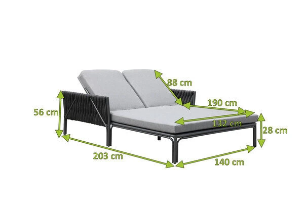 OUTFLEXX Mermaid Doppelliege, Anthrazit, Aluminium/XL Rope, 140x56x132 Cm, Inkl. Polster