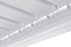 Durch einfaches Kurbeln kann das Dach geöffnet oder geschlossen werden, so dass je nach Bedarf über Schatten- und Sonnenplätze entschieden werden kann. Die Pergola mit den Abmessungen von ca. 300 x 300 x 248 cm, ist aus pulverbeschichtetem Aluminium gefertigt und in dezentem weiß gehalten. Ein Dach in der Farbe weiß ergänzt das zeitlose Design. Dieses ist aus pulverbeschichtetem Aluminium gefertigt. Die verwendeten hochwertigen Materialien und deren Verarbeitung sorgen dafür, dass die Pergola besonders strapazierfähig und witterungsbeständig ist.