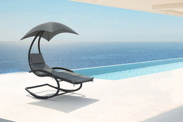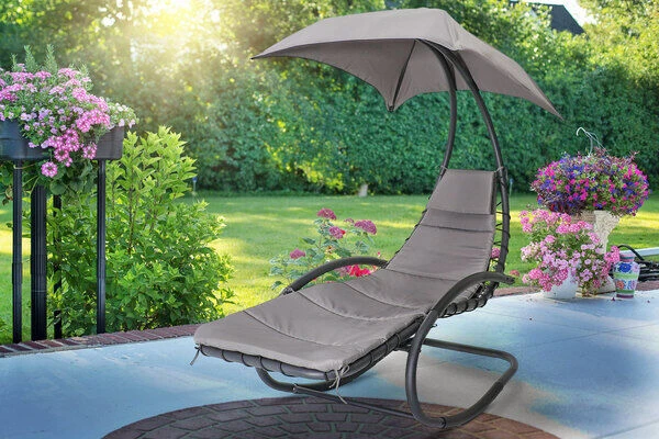 Dieser Schaukelsessel bringt Ihnen einige Vorteile für die Nutzung in Ihrem Garten. Einerseits ist der Sessel keine gängige Sitzgelegenheit, sondern bietet Ihnen eine ausgiebige Sitzfläche mit fortlaufender Ablagefläche für Ihre Beine. In der Sonne die Füße hochlegen leicht gemacht! Andererseits können Sie durch das abgerundete Gestell der Füße den Stuhl ganz einfach in ein leichtes Schaukeln versetzen. Gleichzeitig verhindert das durchgängige Gestell ein ausladendes Schwingen. Zudem sind Sie durch das integrierte Sonnendach vor direktem Sonneneinfall im Gesichtsbereich geschützt.