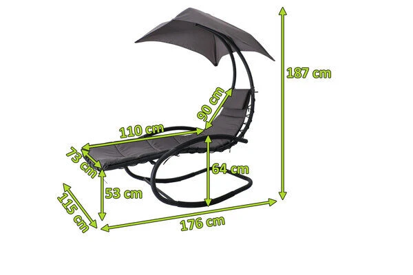 1x OUTFLEXX® Schaukelsessel anthrazit matt/schwarz, ca. 176 x 115 x 187 cm, inkl. Polster