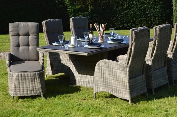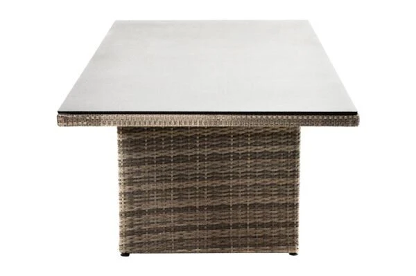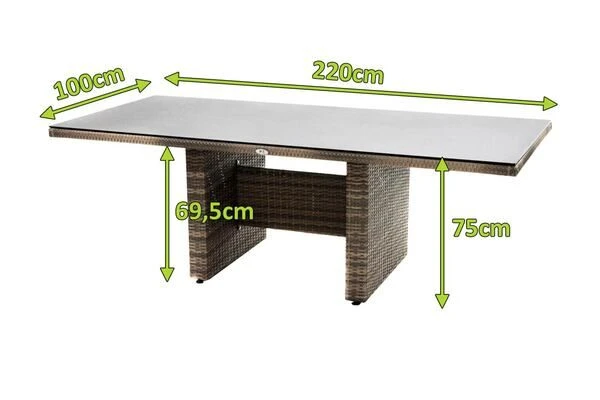 Ploß Rabida Dining Tisch, Champagner-meliert, Polyrattan, 220 X 100 Cm, Glasplatte In Steinoptik