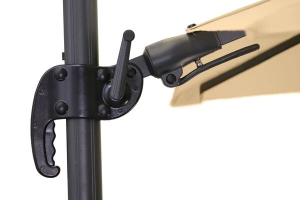 | Kurbelsystem Mit der im Griffteil eingearbeiteten Kurbelmechanik können Sie den Schirm ganz einfach öffnen und schließen. Des Weiteren können Sie hiermit die Dachneigung komfortabel einstellen.  |