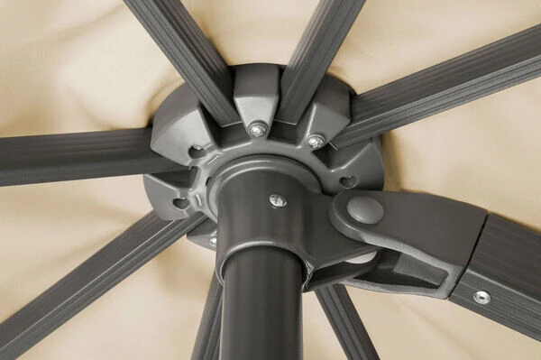 Aluminium ist ein sehr schönes und besonders pflegeleichtes Material. Daher wird es gerne für die Herstellung von Sonnenschirmen verwendet. Sonnenschirme aus Aluminium können Sie unbesorgt das ganze Jahr über im Freien stehen lassen. Das Material ist ziemlich unempfindlich und hält spielend Kälte und Frost stand. Um die Haltbarkeit der Sonnenschirme noch zu verlängern, sollten Sie diese mindestens zweimal jährlich mit einfachen Pflegemitteln reinigen. Die Pulverbeschichtung schützt zusätzlich vor Korrosion und bietet kratzfeste, schlagfeste, sowie witterungsfeste Eigenschaften.