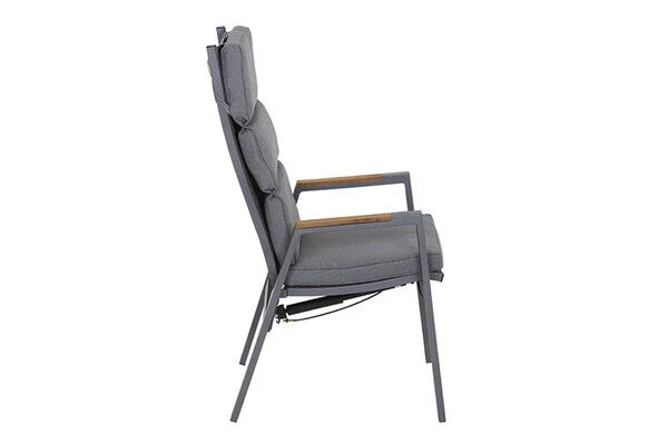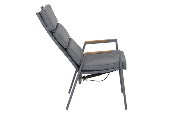 SIENA GARDEN Savona Sessel, Matt Graphit , Alu/FSC-Teak/Texfabric, 74x60x110 Cm, Verstellbare Rückenlehne, Inkl. Polster