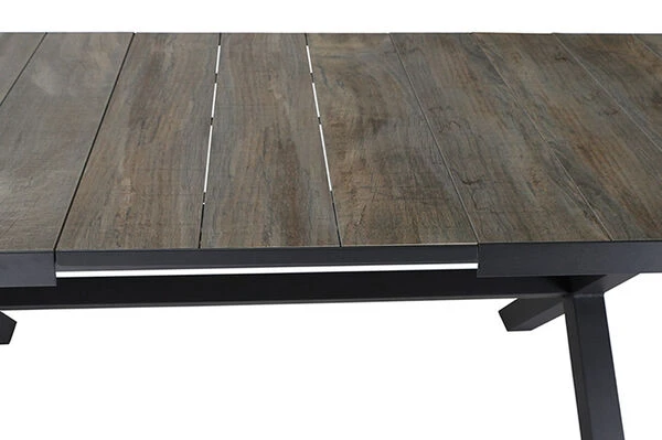 Wer das Besondere liebt und gerne auf jede Gelegenheit vorbereitet sein möchte, ist mit einem Ausziehbaren Esstisch bestens bedient. Der Tisch ist ca. 103 cm breit und ca. 77 cm hoch, im normalen Zustand hat er eine Länge von ca. 205 cm – so steht dem gemĂĽtlichen Mittagessen mit der Familie nichts mehr im Wege. Das Gestell wurde aus pulverbeschichtetem Aluminium in Anthrazit hergestellt, was den Tisch besonders haltbar macht. Die Tischplatte besteht aus hochwertigem Keramik in naturgrauer Holzoptik. Die Platte zum Erweitern des Tisches ist ebenfalls aus ca. Keramik gefertigt und lässt sich ganz einfach ausziehen. Man zieht einfach die beiden oberen Platten auseinander und zieht die darunterliegende Platte nach oben, und schon ist der Tisch auf ca. 265 cm erweitert – perfekt fĂĽr spontane, groĂźe Runden. Die Unterschubhöhe beträgt ca. 68 cm – so kann man gemĂĽtlich mit vielen Arten von Sesseln an diesem Tisch Platz nehmen. Der Tisch hat ein Gewicht von ca. 93,5 kg, und ist somit perfekt gegen Windstöße geschĂĽtzt. Die FuĂźkappen bestehen aus schwarzem Kunststoff und schĂĽtzen den Boden vor unschönen Kratzern beim VerrĂĽcken des MöbelstĂĽcks.