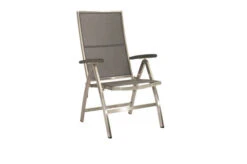 Die dazu passend kombinierten Sessel überzeugen nicht nur mit dem zeitlosen Design und den hochwertigen Materialien, sondern vor allem auch durch den Komfort und die Funktionalität. Schlicht, unauffällig und dennoch ein Hingucker. So lassen sich der Cardiff Stapel- und Multipositionssessel wohl am besten beschreiben. Die hochwertigen Materialien und die sorgfältige Verarbeitung sorgen nicht nur für die besondere Optik der Stühle, sondern machen zudem sehr stabil. Der Cardiff wird Ihnen durch seine hohe Widerstandsfähigkeit gegen Wind und Wetter viele Jahre Freude bereiten. Das verwendete Edelstahl der Güteklasse 304 ist rostfrei und ebenso wie das Textilgewebe der Sitzfläche und Rückenlehne besonders pflegeleicht. Die Sitzfläche hat die Farbe silber und ist gepolstert, was für zusätzlichen Komfort sorgt.Leichte Verschmutzungen lassen sich ganz einfach mit ein wenig Wasser wieder entfernen. Die Armlehnen wurden aus Aluminium gefertigt und besitzen die Farbe anthrazit. So können Sie sich guten Gewissens zurücklehnen und sich so richtig entspannen. Durch die Stapelfunktion und den Maßen von ca. 68,5 x 56 x 110 cm lässt sich der Stapelsessel platzsparend verstauen. Ebenso die zwei weiteren Stühle durch die Klappfunktion und den Maßen von ca. 69 x 60 x 110 cm, wenn Sie doch einmal etwas mehr Platz auf Ihrer Terrasse oder im Garten benötigen sollten.