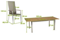 6x Stapelsessel Cardiff, silber/taupe, Edelstahl/Textilene/FSC-Teakholz, ca. 68,5x56x110 cm (416897) 1x STERN Ausziehtisch, silber/natur, Edelstahl/FSC-Teakholz, ca. 162/220x90x75 cm, Butterfly-Auszug (417379)