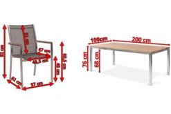 Die Kombination aus edlen, zeitlosen und rustikal, gemĂĽtlichen Elementen macht diese Esstischgruppe so besonders. Das Set besteht aus einem Esstisch der Marke OUTFLEXX mit den MaĂźen von ca. 200 x 100 x 76 cm und 6 Stapelsesseln der Marke Stern aus der Serie „Cardiff“. Die hellen Farben des Gestells sind in Verbindung mit der Farbe des Teakholzes ein echter Hingucker und sorgen fĂĽr eine zeitlose Frische. Dadurch lässt sich die Esstischgruppe wunderbar mit anderen Farben kombinieren. So bleibt Ihnen viel Raum fĂĽr kreative Gestaltungsmöglichkeiten. Die hochwertigen Materialien und die sorgfältige Verarbeitung sorgen nicht nur fĂĽr die besondere Optik dieser Esstischgruppe, sondern machen sie auch sehr stabil.