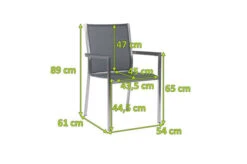 Der Sessel überzeugt nicht nur mit seinem zeitlosen Design und den hochwertigen Materialien, sondern vor allem auch durch seinen Komfort und seine Funktionalität. Schlicht, unauffällig und dennoch ein Hingucker. So lässt sich der Polaris wohl am besten beschreiben. Holen Sie sich mit diesem Sessel Eleganz vereint mit perfektem Sitzkomfort nach Hause und genießen Sie entspannte Stunden z.B. nach Ihrem Feierabend. Die hochwertigen Materialien und die sorgfältige Verarbeitung sorgen nicht nur für die besondere Optik dieses Stuhls, sondern machen ihn auch äußerst stabil. Der Polaris wird Ihnen durch seine hohe Widerstandsfähigkeit gegen Wind und Wetter viele Jahre Freude bereiten. Das verwendete Edelstahl der Güteklasse 304 ist rostfrei und ebenso wie das Textilgewebe der Sitzfläche und Rückenlehne besonders pflegeleicht. Die Sitzfläche hat die Farbe karbon. Leichte Verschmutzungen lassen sich ganz einfach mit ein wenig Wasser wieder entfernen. Die Armlehnen wurden aus Aluminium gefertigt und besitzen die Farbe schwarz. So können Sie sich guten Gewissens zurücklehnen und sich so richtig entspannen. Durch seine Stapelfunktion und den Maßen von ca. 61 x 54 x 89 cm lässt sich der Stuhl aber dennoch platzsparend verstauen, wenn Sie doch einmal etwas mehr Platz auf Ihrer Terrasse oder im Garten benötigen sollten.