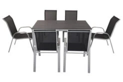 7-teilige Esstischgarnitur von VILLANA aus Aluminium/Holzimitat in silber/schwarz mit Platz fĂĽr 6 Personen