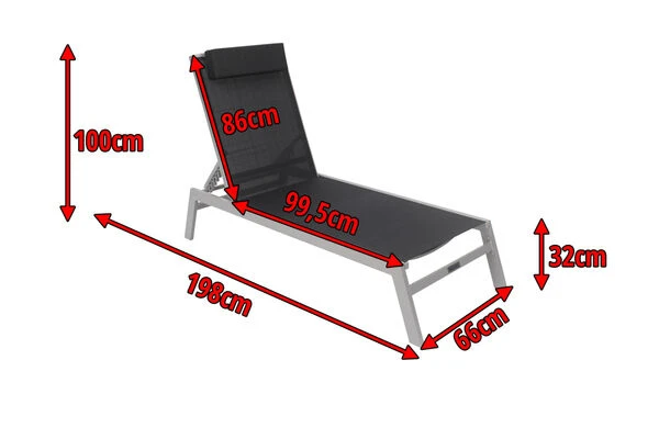 Diese schicke und zeitlose Gartenliege von Villana bereichert jeden Garten, Balkon, Spa-Bereich oder jede Terrasse. Sie ist mehrfach verstellbar, sodass man fĂŒr sein WohlgefĂŒhl die richtige Einstellung wĂ€hlen kann. Die Liege verfĂŒgt ĂŒber ein hochwertiges, silberfarben pulverbeschichtetes Aluminiumgestell, auf welches ein formstabiles Textil-Gewebe 2×1 (70% Polyvinylchlorid / 30% Polyester) in Schwarz aufgespannt wurde. Mit einer Belastbarkeit von bis zu ca. 160 kg ist diese Liege besonders robust und fĂŒr erholsame Stunden in der Sonne einsatzbereit. Die FuĂkappen sind aus silbernem Kunststoff und schĂŒtzen den Boden vor unschönen Kratzern beim VerrĂŒcken des Stuhles, die silbernen Schrauben aus galvanisiertem Stahl runden die Optik perfekt ab. Mit einem Gewicht von nur ca. 8,1 kg und MaĂen von ca. 198 x 66 x 32 cm fĂŒgt sich die Liege perfekt in Ihren Garten ein und lĂ€sst sich zusĂ€tzlich auch leicht hin und her stellen. Jetzt noch ein gutes Buch dazu und schon wird jede Minute in Ihrem Garten zur puren Entspannung.